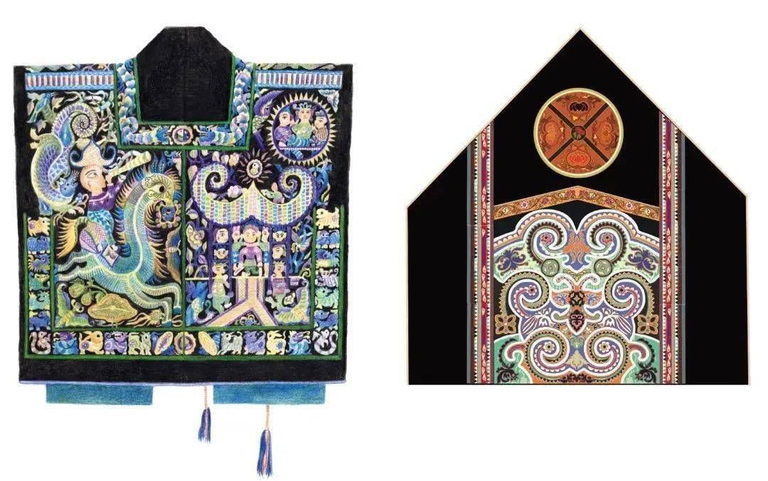 ▲《纹以载道:中华民族传统纹样精品及创新设计展》展出的民族艺术作品。图片来源:william威廉中文官网美术学院