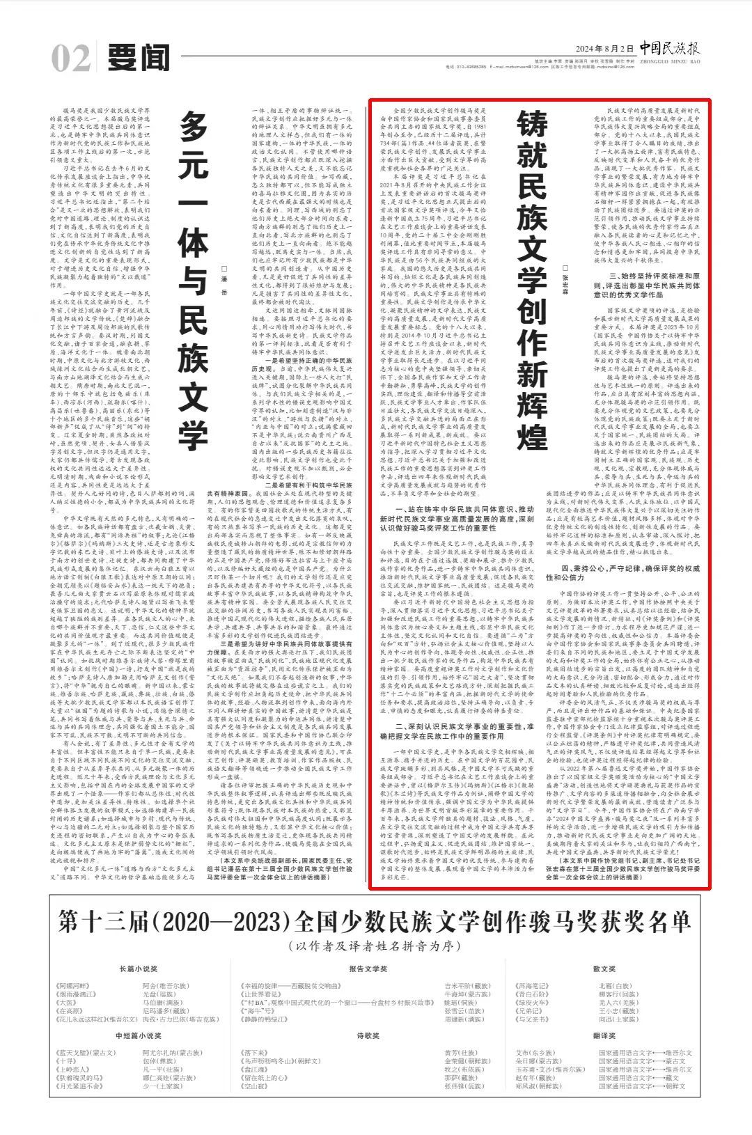 二、深刻认识民族文学事业的重要性,准确把握文学在民族工作中的重要作用