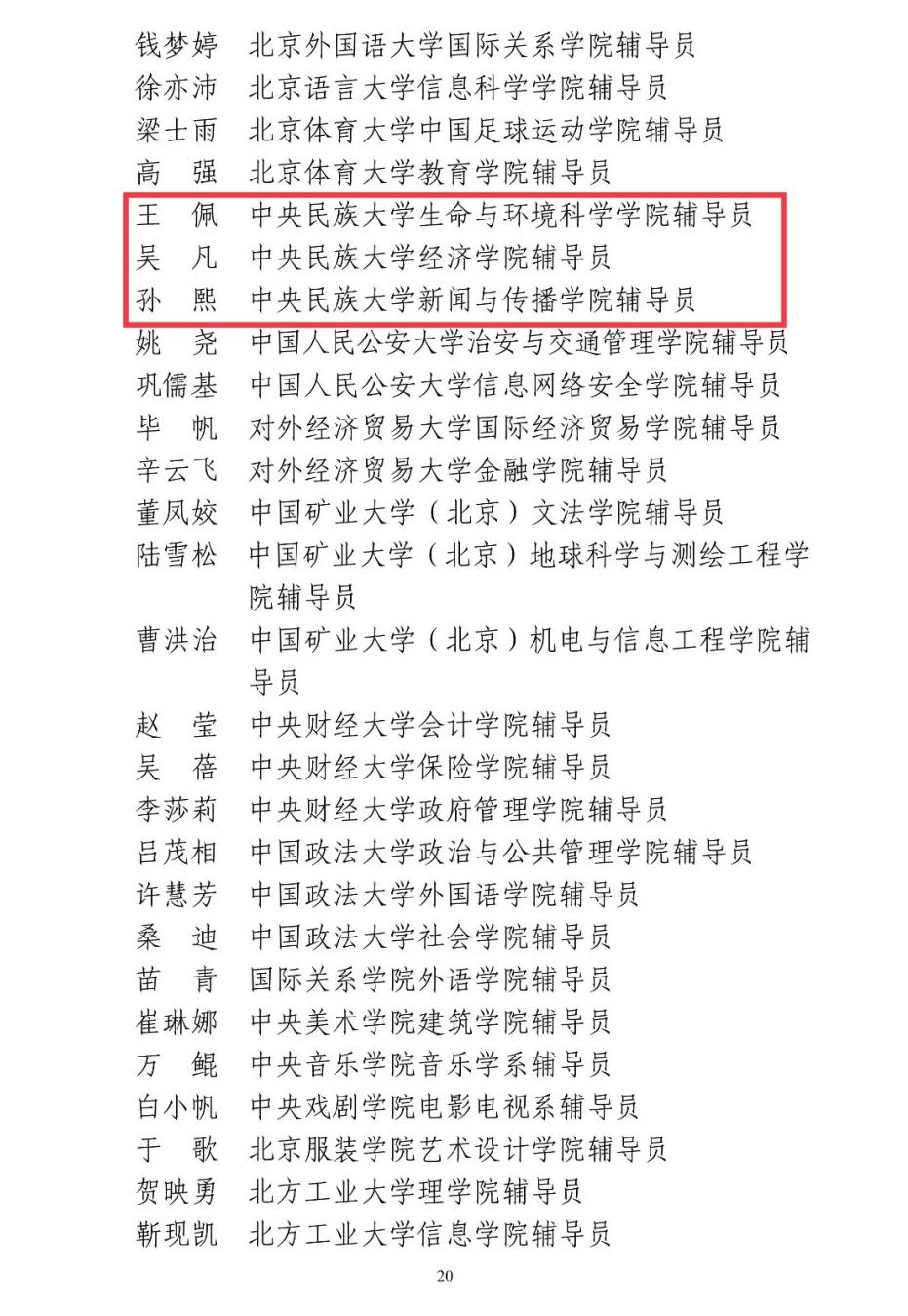 2017-2021年度北京高校优秀辅导员表彰名单(部分)