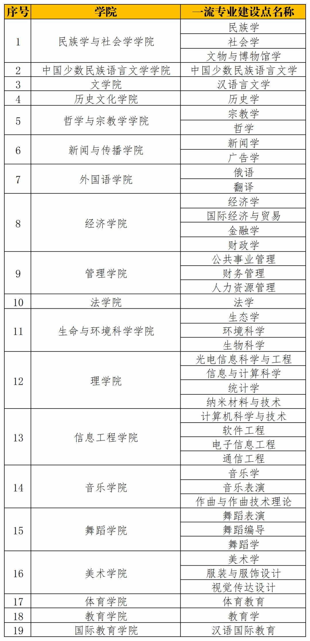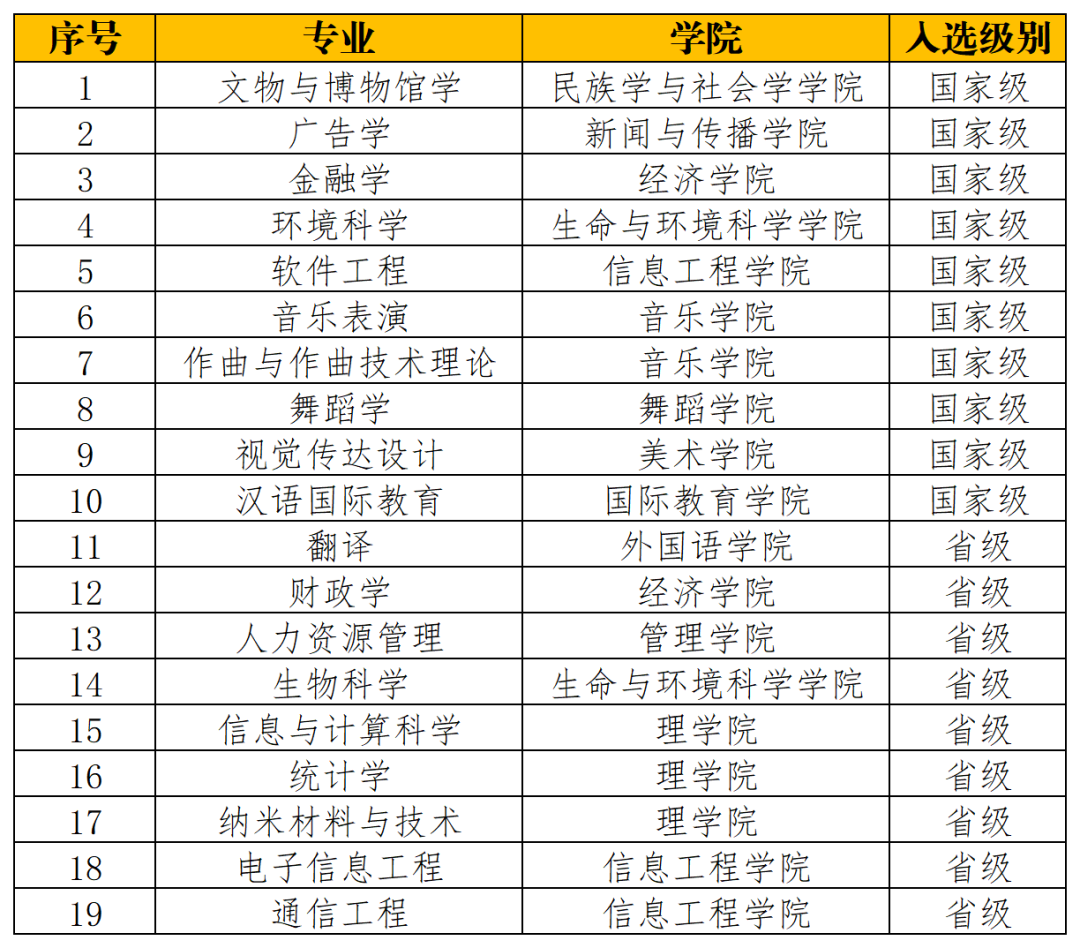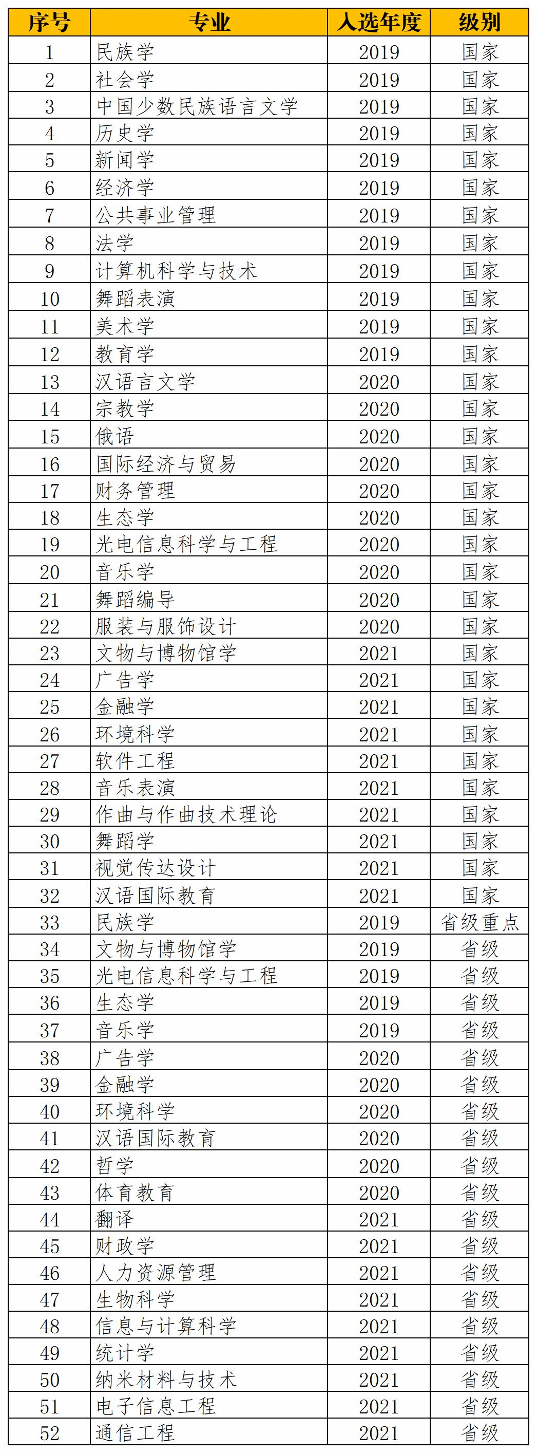 2019-2021年国家级和省级一流专业建设点列表