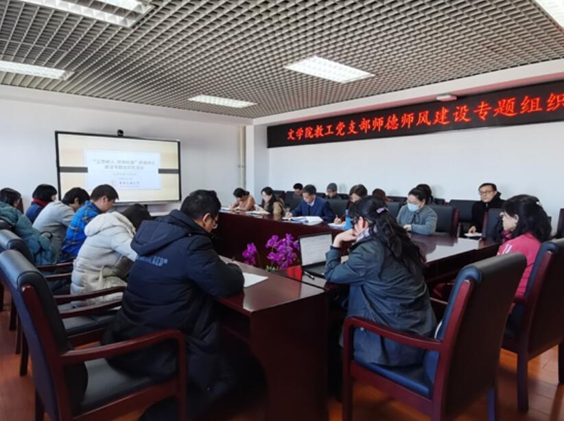 新闻网讯 12月18日下午,文学院教工党支部召开“立德树人防微杜渐”师德师风建设专题组织生活会。文学院全体教工党员参会,会议由教工党支部书记张蒙蒙主持。