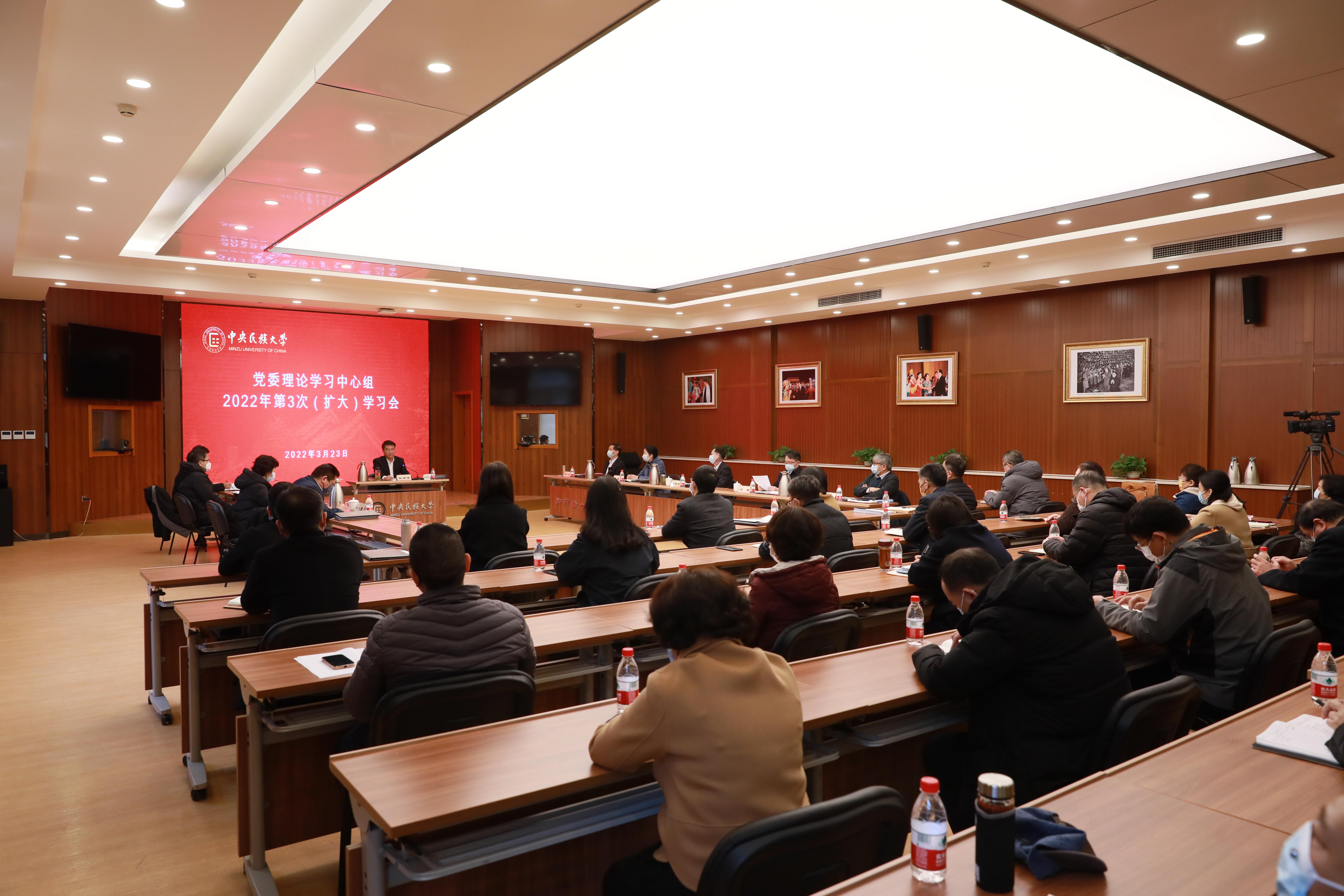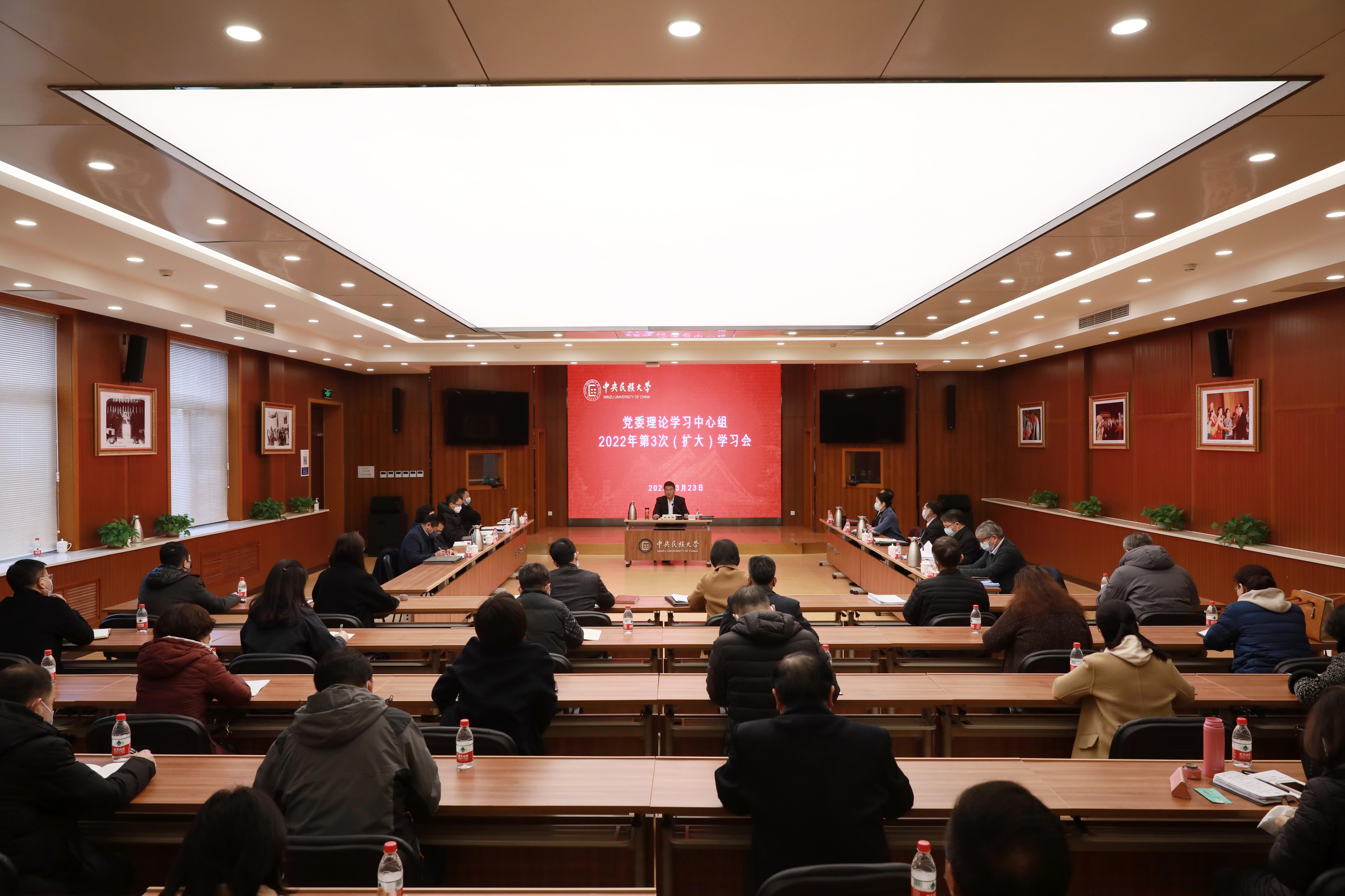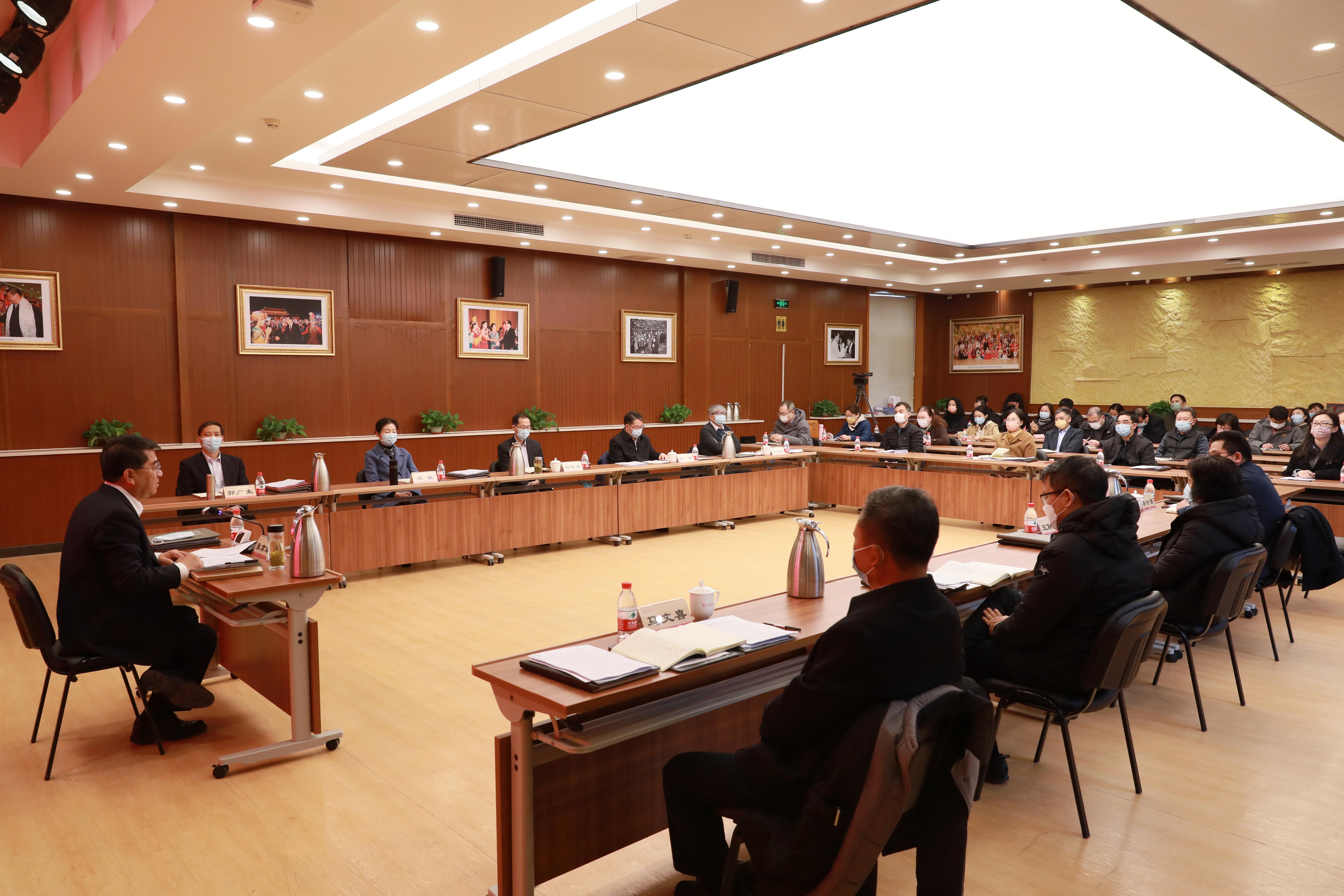 学校党委理论学习中心组成员,党委办公室、党委组织部、党委宣传部、党委教师工作部、党委学生工作部主要负责人,各二级单位党组织主要负责人参加会议。(摄影:马丹妮)