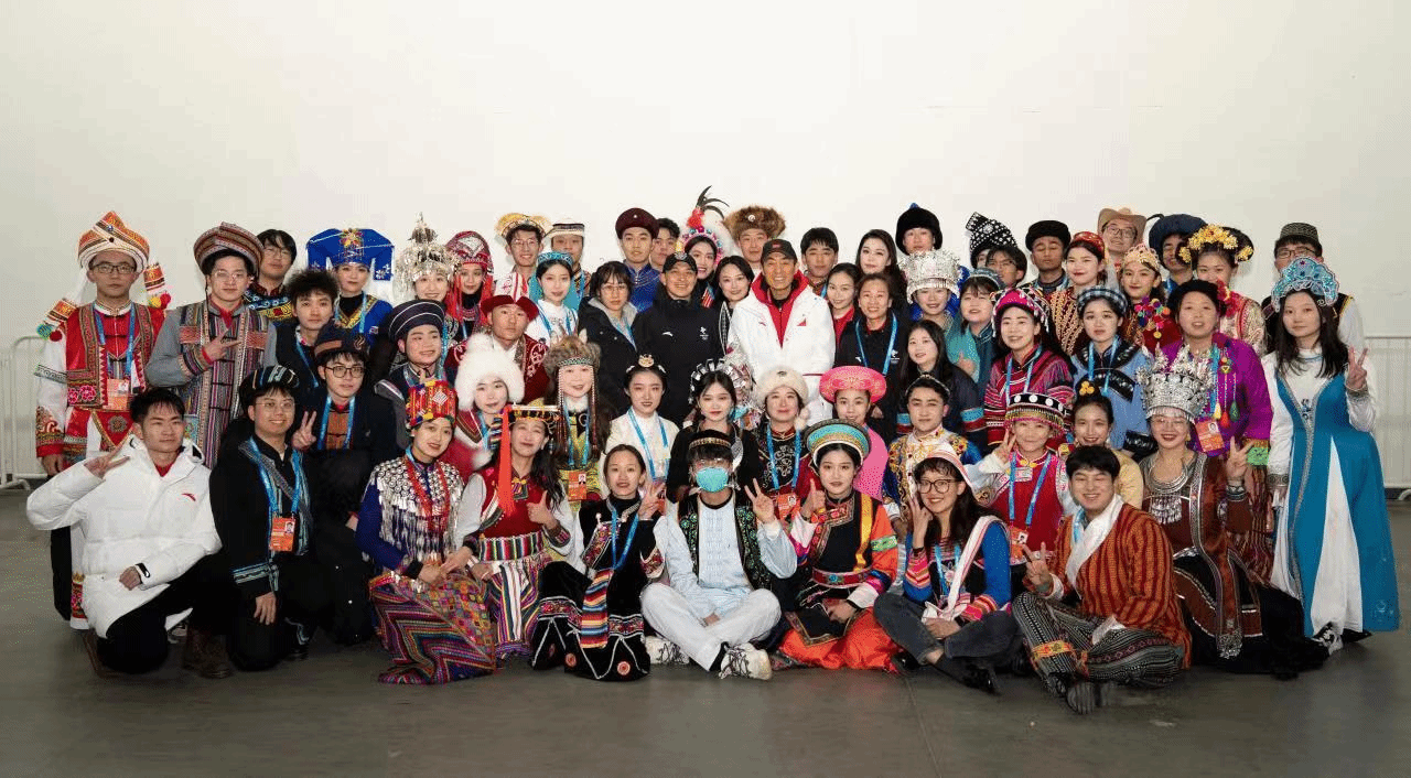 冬奥会开幕式《致敬人民》环节民大演职人员在后台合影