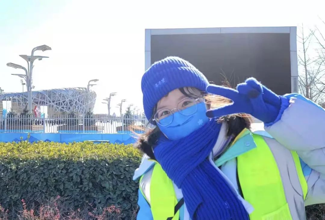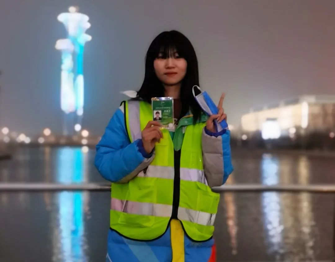 沈静怡:城市志愿者就像一颗一颗螺丝钉,大家全力以赴,协调一致,我的岗位主要在P7停车场,这份工作在我眼中是渺小而伟大的,就像街灯一样站在路边,虽然渺小,但我们也能发出光芒,引导观众向前,为冬奥会的顺利开展提供最大程度上的协调保障。
