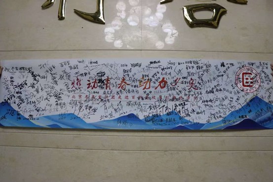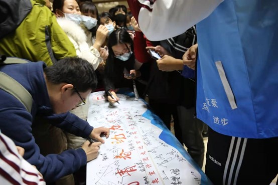 随后学校冬奥会和冬残奥会志愿者招募系统被开启,现场师生在“燃动青春、助力冬奥”纪念卷轴签名留念。