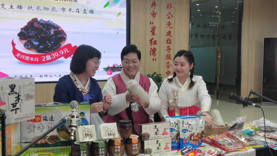 为把因疫情影响而滞销的优质土特产品销售出去,一向低调的杨文军当了“网红”。他身着朝鲜族民族服饰,走进直播间,变身“卖货郎”,向广大网友推荐农产品,第一次直播带货就吸引400万流量,而有了这次预热,第二次直播活动话题量更是超过3800万,获得广大网友喜爱。龙岩村木耳、开山屯大米被销售一空,各级代理商点明要“市长代言”的产品。这一尝试不仅推销了当地农特产品,也提高了龙井的知名度,还被州电商领导小组作为助力复工复产、促进经济发展的样板加以推广。