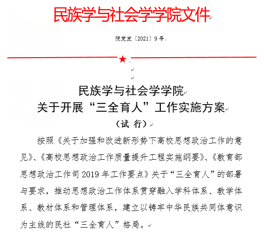 民族学与社会学学院以铸牢中华民族共同体意识为主线,聚焦立德树人根本任务,创新思想政治工作体系,构建“三全育人”工作格局,为培养堪当民族复兴大任的各民族优秀人才保驾护航。