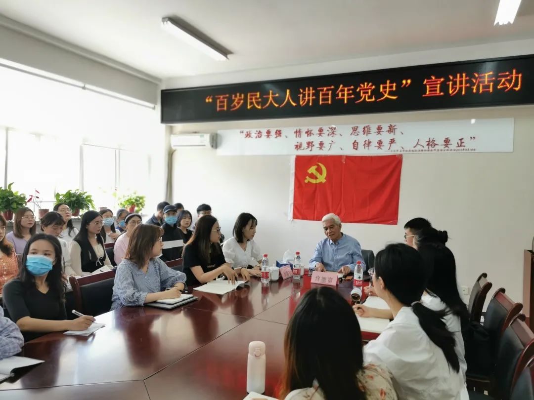 历史川流不息,精神代代相传。为充分发挥学校老同志们现身说史、言传身教的激励感召作用,注重传帮带、找到结合点、突出组合力,学校邀请了11名经验丰富、贡献突出、声誉度高、影响力大的老同志代表作为宣讲团主讲教师,同时也遴选了11名优秀青年师生代表,做老同志们的“助讲员”“联络员”“宣传员”,两两结对、双方年龄加在一起恰好百岁或超过百岁,称之为“百岁民大人”。这一“顶流”宣讲团,广泛开展党史、新中国史、改革开放史、社会主义发展史、校史、延安精神、民大人的红色记忆等宣讲活动,掀起民大党史学习教育的热潮。