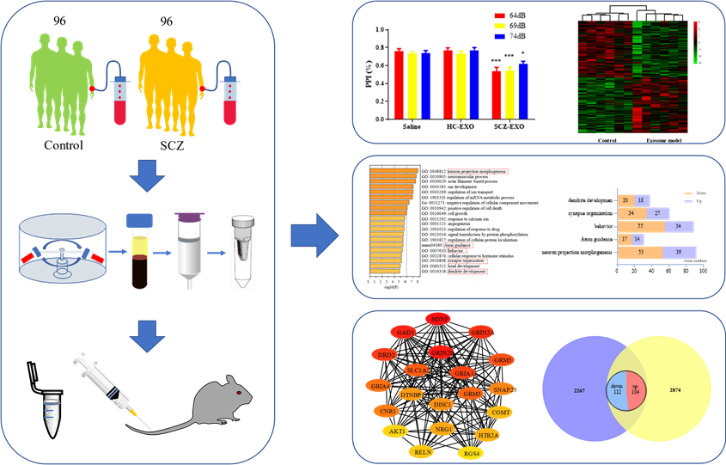 外泌体是一种在细胞间起通讯功能的纳米囊泡,其通过囊泡内的RNA和蛋白质等内涵物在多种生理病理过程中发挥重要作用,然而外泌体在精神分裂症的发生发展过程中是否发挥作用以往并不清楚。程勇教授团队将精神分裂症患者来源的外泌体移植到小鼠体内,发现小鼠表现出多种精神分裂样行为及相关病理特征,提示了外泌体在精神分裂症病理过程中的关键作用。进一步通过多组学研究技术发现,遗传学和表观遗传学因素参与外泌体介导的精神分裂症的发生与发展。该研究成果有助于阐明精神分裂症发病机制,同时也为精神分裂症的研究提供了一种极具潜力的动物模型。