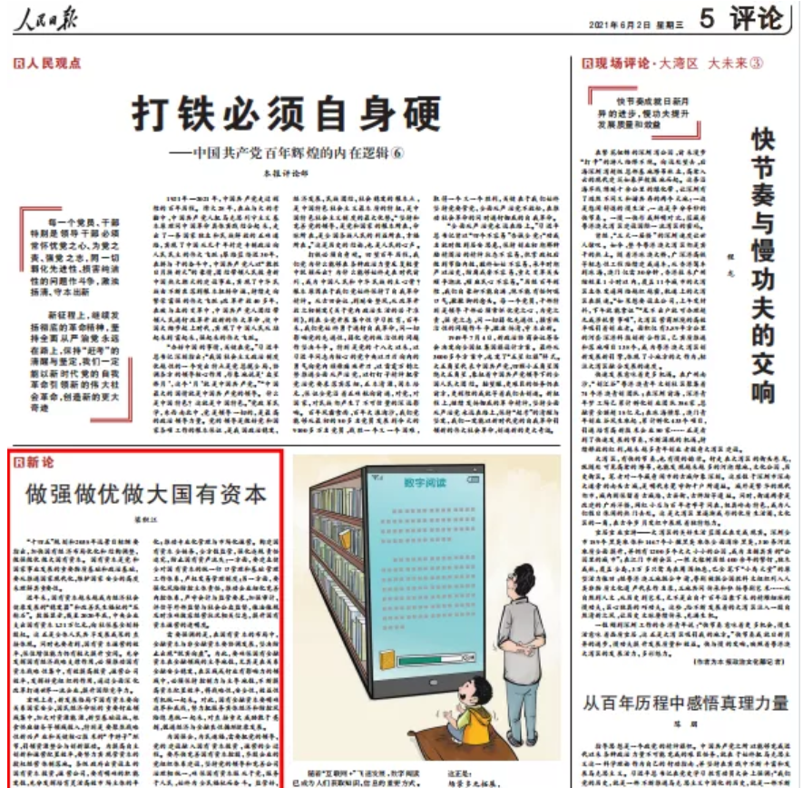 新闻网讯 6月2日,《人民日报》刊登我校管理学院梁积江教授《做强做优做大国有资本》一文。全文如下: