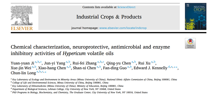 新闻网讯 近日,我校生命与环境科学学院龙春林教授团队在金丝桃属民族药物学研究中取得新进展,研究成果以“Chemical characterization, neuroprotective, antimicrobial and enzyme inhibitory activities ofHypericumvolatile oils”为题发表于Industrial Crops and Products(影响因子5.645,农林科学类1区Top)。论文连接:https://doi.org/10.1016/j.indcrop.2021.113991。