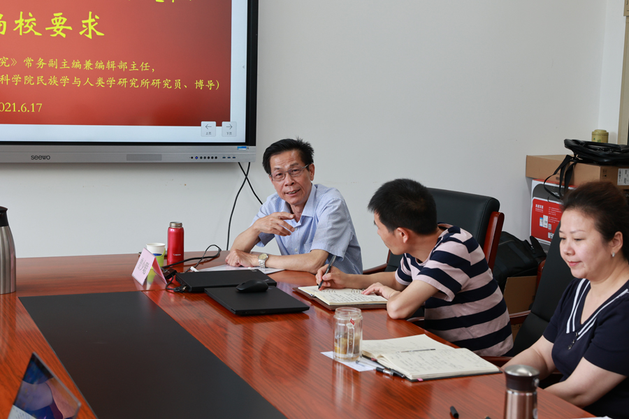 新闻网讯 2021年6月17日下午,期刊社举办“桴鼓论坛”系列之八,邀请《民族研究》常务副主编兼编辑部主任、中国社会科学院民族学与人类学研究所研究员、博导曾少聪到社举办题为“《民族研究》的办刊定位与编校要求”讲座。学校党委副书记邹吉忠出席并做点评总结。讲座由期刊社社长苏发祥主持,期刊社全体人员和其他学院部分师生代表参加。