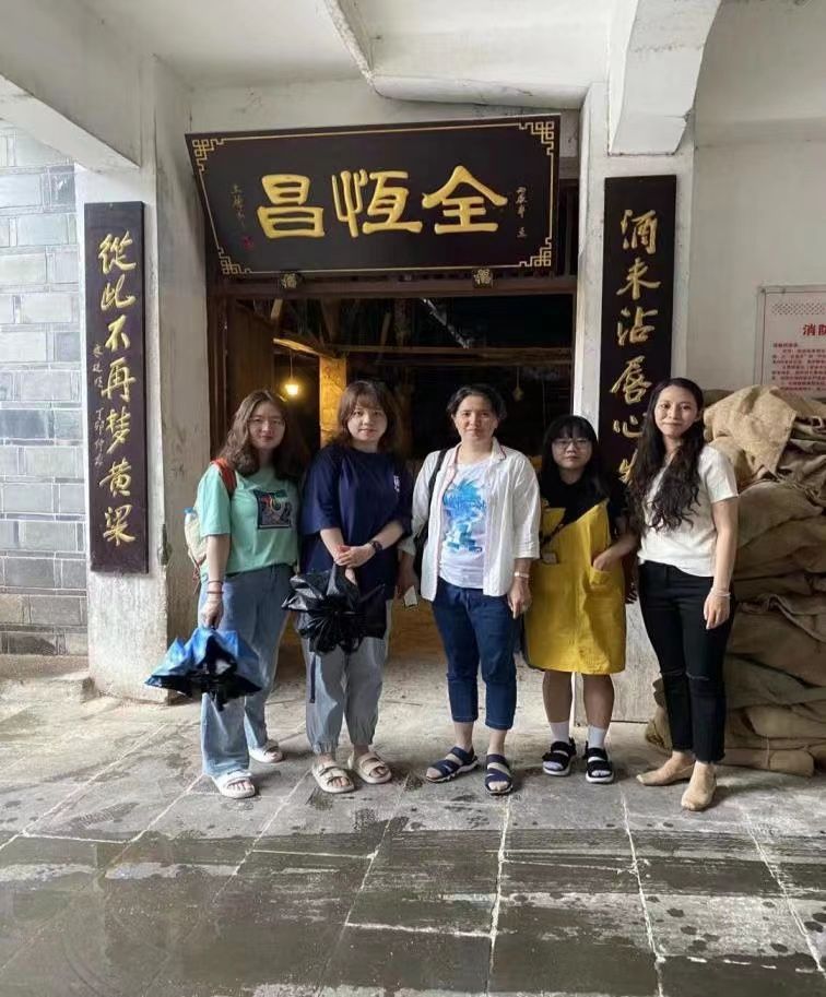 田艳带领学生在四川省宜宾市就“五粮液传统酿造技艺的传承与保护研究”课题做调研