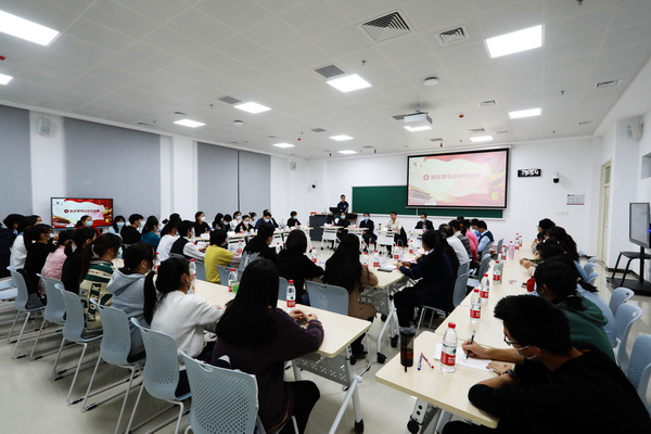 新闻网讯 11月9日晚,党委书记张京泽在丰台校区日新楼101智慧教室,参加所联系的文学院2021级汉语言文学3班“大学生活畅想”主题班会,并为全体同学上了一堂别开生面的思政课。党委副书记邹吉忠一同参加班会。