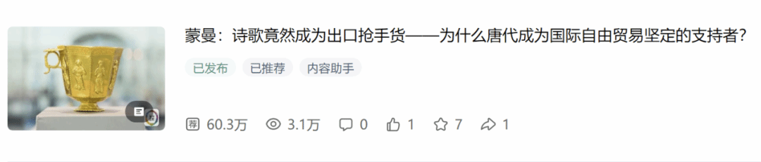 其中《茶,为什么在唐代被各民族奉为公认的“国家级饮料”?》单篇微博阅读量破2万,《蒙曼:诗歌竟然成为出口抢手货——为什么唐代成为国际自由贸易坚定的支持者?》单篇百家号阅读量破3万。在学校企业微信植入“道中华”内容每日更新提醒,用户进入信息中心即可观看文章,确保全校师生全覆盖阅读、常态化学习。