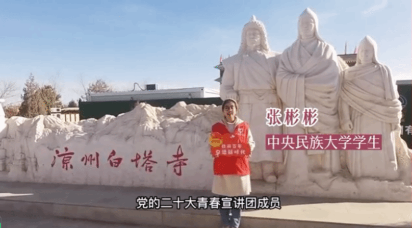 作为共青团凉州区委“党的二十大青春宣讲团”成员,文学院张彬彬同学走向凉州区的大街小巷,以网络新媒体为宣传媒介,用通俗易懂的独特方式向群众宣讲党的二十大精神。她在活动过程中无比感慨,在新时代的伟大征程上,青年学子定要像党的二十大报告中所讲,心往一处想、劲往一处使,让青春在奉献中焕发绚丽光彩!