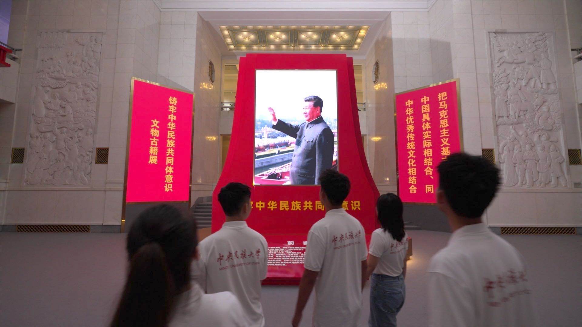 1500余件文物古籍,铺展开了各民族交往交流交融的历史画卷。从“大一统”到“大交融”再到“大团结”,每一件文物古籍都体现了中华文化的博大精深,都承载着中华民族共同体的历史记忆。在这沉浸式的教学体验中,同学们深入探寻民族团结的文化根脉,见证中华文化的根深叶茂,深刻感受各民族共同开拓的辽阔疆域、共同书写的悠久历史、共同创造的灿烂文化、共同培育的伟大精神,深切体悟休戚与共、荣辱与共、生死与共、命运与共的中华民族共同体理念。