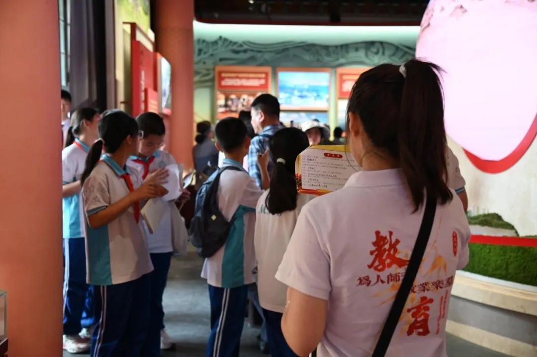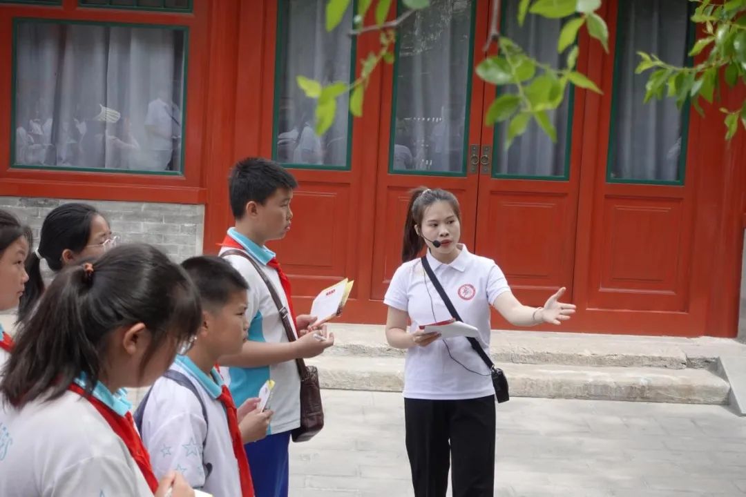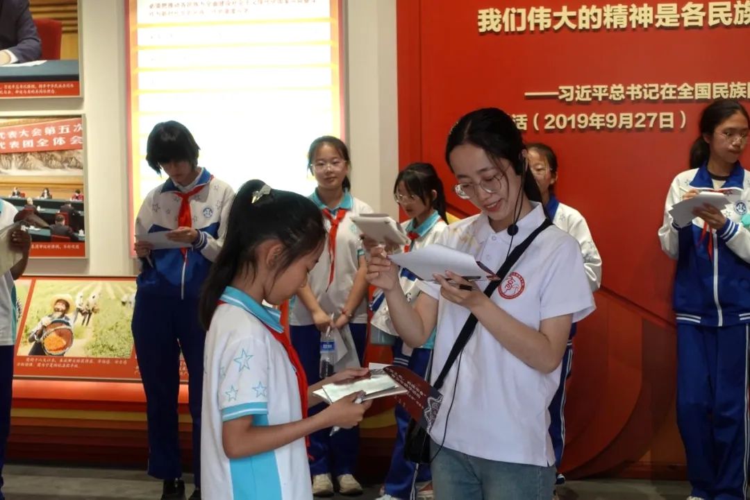 主题研学活动在讲解与参观的基础上,结合教育学专业,创新设计“同心共识:一次大会;同行共进:一棵大枣树;同勉共促:一个党支部;同心共情:一面旗帜;同学共修:一个理论”五条特色研学路线,在大学生的带领下,小学生们“学而思、学而寻、学而游、学而乐、学而优”,共同铸牢中华民族共同体意识。