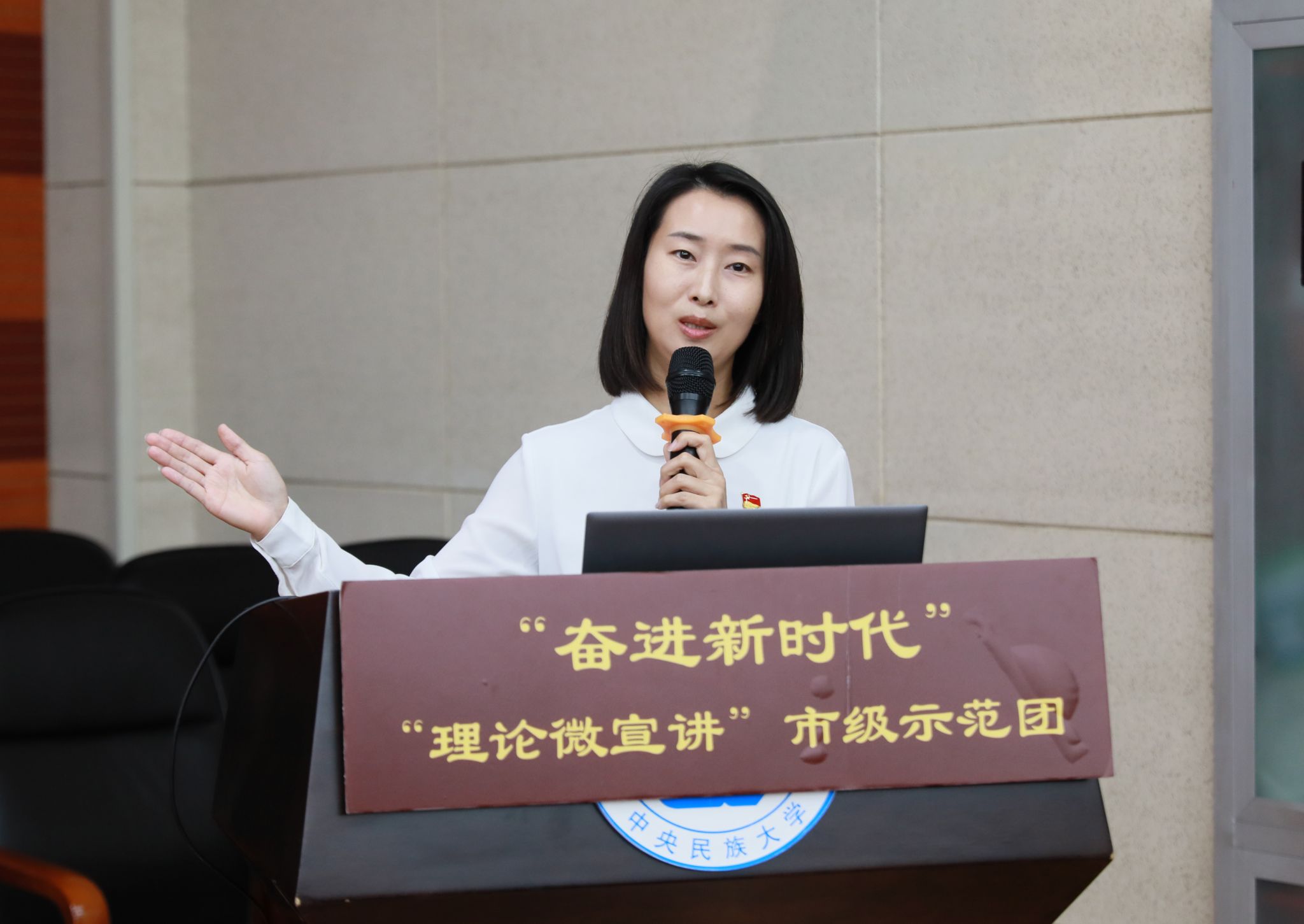 据悉,北京市学习贯彻党的二十届三中全会精神“理论微宣讲”市级示范团由市委宣传部、市社会科学院(市委讲师团)联合组建,成员包括首都部分高校马克思主义学院青年教师、各区委党校业务骨干和市社会科学院青年科研人员。他们聚焦高质量发展、数字经济、乡村振兴、基层治理、生态文明建设、人口老龄化、矛盾纠纷源头治理、文化自信、党建引领老旧社区改造等主题,结合北京市全面深化改革的鲜活案例,以小见大、多角度宣讲党的创新理论,引导广大师生深刻领悟习近平新时代中国特色社会主义思想的实践伟力。9月份,宣讲团赴10所高校开展宣讲,同时搭建新媒体传播平台,推动线上传播,积极打通理论宣讲的“最后一公里”,推动党的创新理论“飞入寻常百姓家”。(摄影/马丹妮)