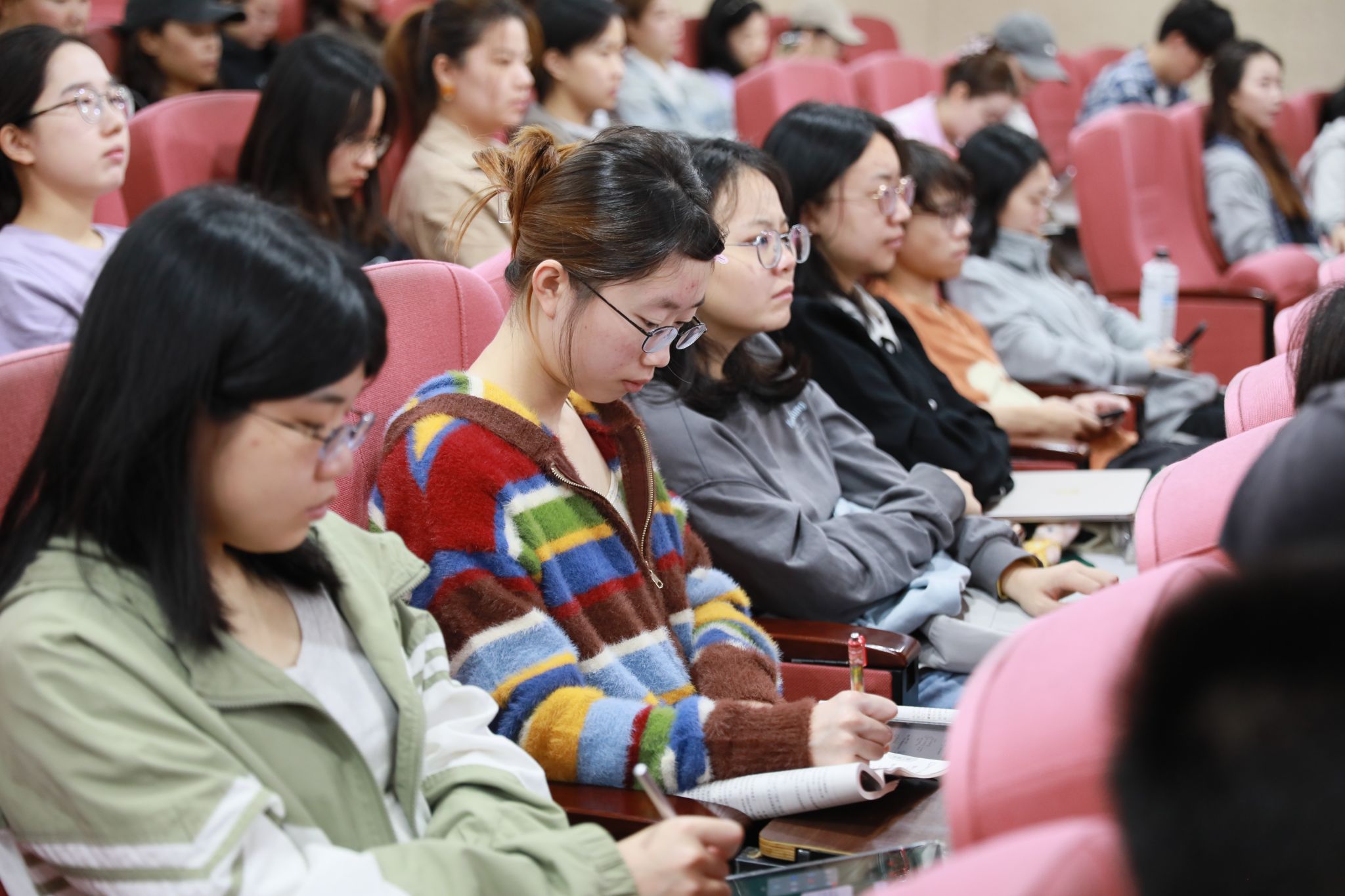 宣讲活动全程气氛热烈,通俗易懂的语言、深入浅出的生动宣讲,在听众中引发强烈反响。生命与环境科学学院辅导员穆昱含表示,通过现场聆听,真切感受到了社会各领域全面深化改革的累累硕果,关于数字经济、乡村振兴、基层治理、生态文明建设的生动案例,“冒着热气与生活气”地进入到思政教育中,以小见大、多角度地宣传了党的创新理论,让师生们深刻感悟到了习近平新时代中国特色社会主义思想的实践伟力。2021级历史学基地班薛思晔同学表示,无论是淄博烧烤,还是天水麻辣烫,都让自己深深感受到新媒体在“城市名片”形塑与发展中的重要作用,未来会加强相关学习,用有温度、有露水的文字,有新意、有创意的表达方式,讲好首都校园铸牢中华民族共同体意识的鲜活故事。2021级教育学专业杨涛宇同学表示,宣讲员们面对新形势新挑战,提出新方法,做出新成就,是马克思主义中国化的生动诠释,是中国式现代化建设的最好名片。