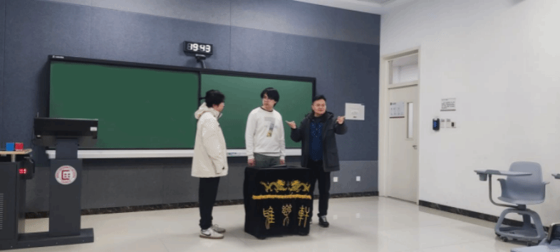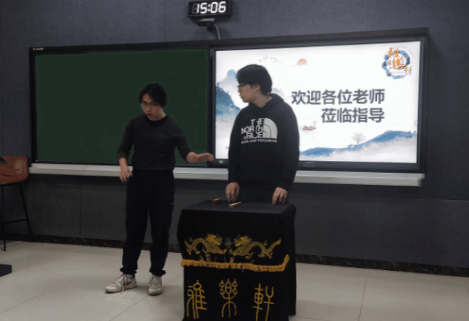 同学们也通过相声节目来表达对各位老师的欢迎,从耳熟能详的《报菜名》《太平歌词》,到传统相声节目《羊上树》《对春联》,刘利强老师更是与在场的同学共同演绎了一段《夸住宅》,带来了相声曲艺翻转课堂。