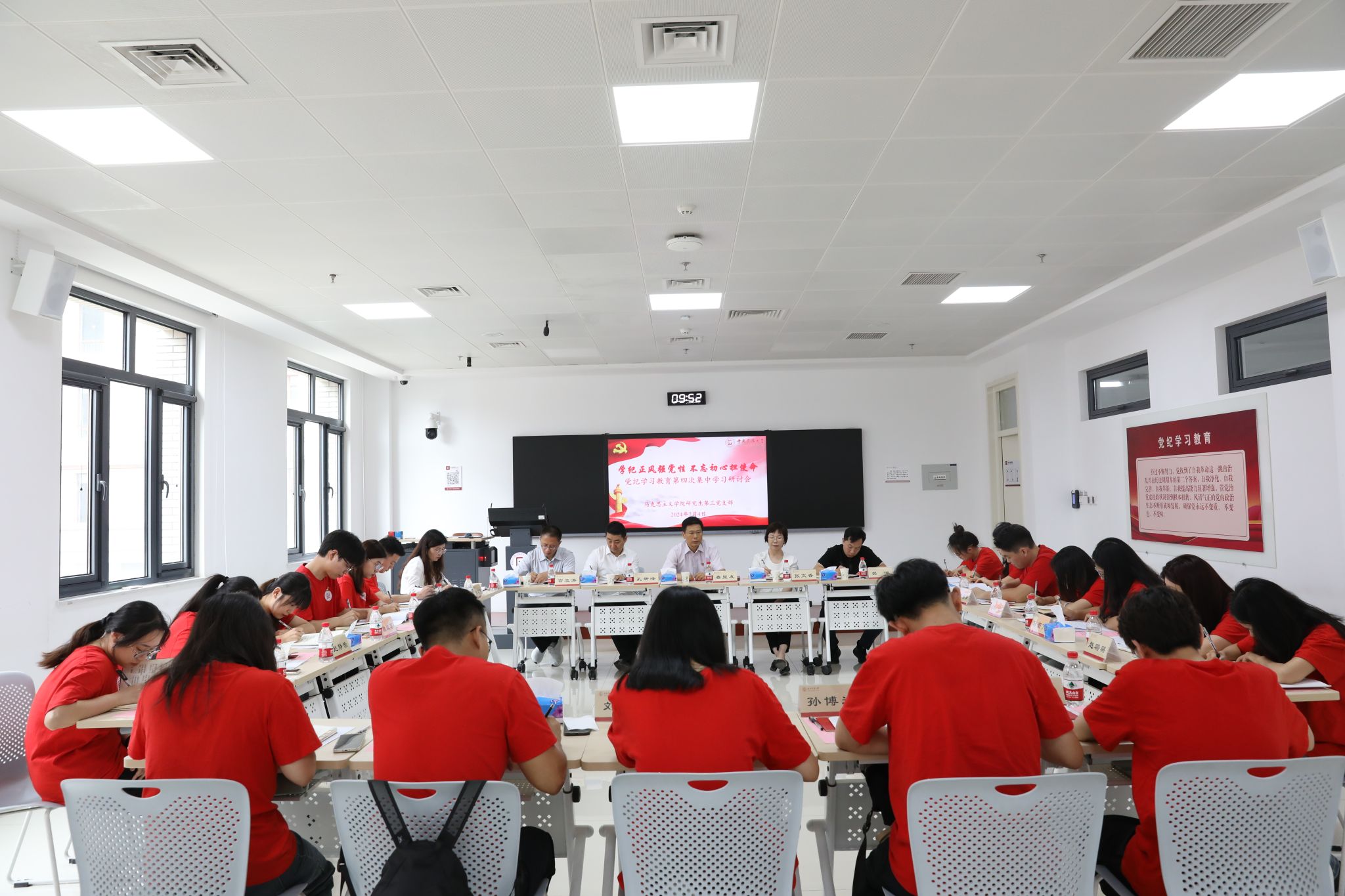 新闻网讯 7月4日,马克思主义学院研究生第三党支部“学纪正风强党性 不忘初心担使命”党纪学习教育第四次集中学习研讨会在丰台校区举行。党委书记查显友参加学习研讨。