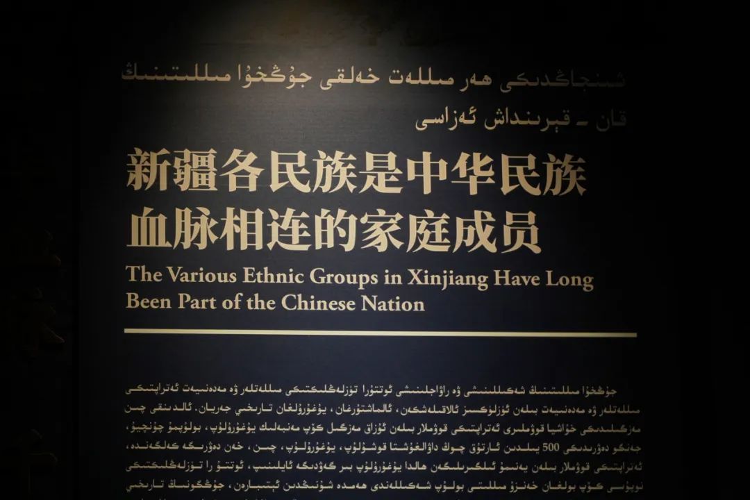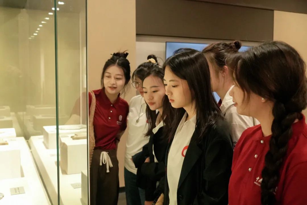 在喀什博物馆,实践团成员们结合背景材料与研究兴趣,向大家重点分享了四个文物,分别是西周的箜篌、汉代“五星出东方利中国”织锦、北朝的三耳压花陶罐和抗日战争时期的“绘象中华产业图”棉毛毯。通过沉浸式参观与参与式分享,成员们在博物馆体悟文字与物质承载多元一体的中华文明,初步感受到喀什地区各类文明符号交融荟萃。