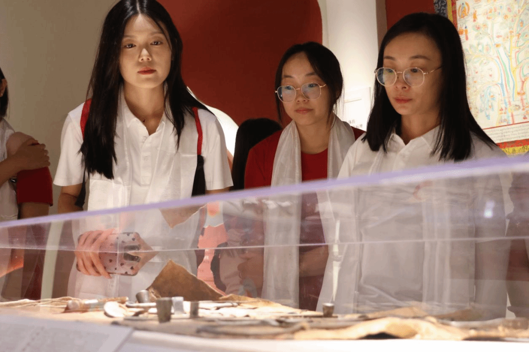 在丽江市束河古镇有一家独特的博物馆——古道藏家博物馆,是丽江首家民营博物馆。三百年前,辛劳的赶马人聚集在泽仁家的马帮驿栈食宿歇脚、寻医问药,以物质交流促进文化交融。实践团成员漫步于古道藏家博物馆,感受滇藏古道上的民俗文化,寻问藏医《四部医典》的高明巧思,欣赏非遗唐卡绘画艺术,详细了解各民族共同团结奋斗、共同繁荣发展的具体实践。