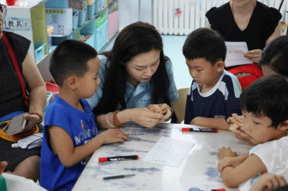 拼接鲁班锁、共读绕口令、齐学手势舞、展示民族乐器……丰富多彩的教学活动环环相扣。“我们都有一个共同身份是什么?”“中华民族!”“我们都有一个共同家园是什么?”“中国!”……伴着《家园》的悠扬旋律,小朋友们、大朋友们手拉着手,欢唱起舞。关于中华民族共同体的故事和知识如同清清的河水,流进了每一个小朋友的心间。