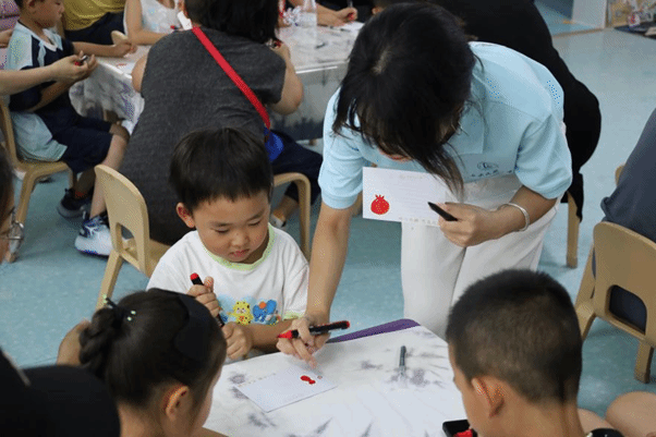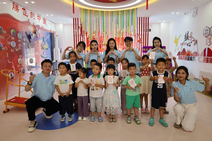 “我们一起来画石榴好不好?”乌拉特中旗第二幼儿园内,小朋友们的兴趣瞬间被调动了起来,用稚嫩的笔触一笔一画描绘出一颗颗圆滚滚的石榴。团队成员通过讲解石榴籽的寓意,巧妙引出了“四个与共”的共同体理念。而这些画上石榴的明信片更是独一无二、巧具匠心,其背景图案由民大研支团服务地云南省思茅第一小学的学生们亲手绘制,跨越千山万水而来。来信与回信之间,西南与北疆的情谊被紧密相连,这不仅是一颗颗童心对民族团结最纯真的诠释,更是对“大中小幼”一体化“铸牢”教育实践体系最生动的刻画。