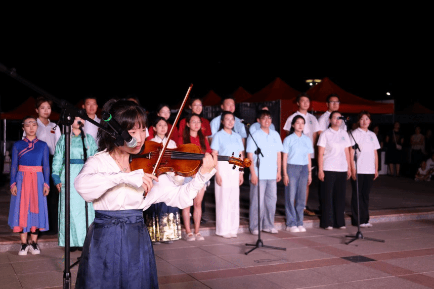 演出尾声,团队成员与其他高校学子并肩而立,和现场观众深情合唱《我和我的祖国》,共同用歌声诠释着对伟大祖国的热爱与敬意,编织起一幅“和合共美”的幸福画卷。学子们在百姓喜闻乐见的惠民舞台上传承中华文化薪火,更在服务基层的交流共融中坚定青春担当信念。