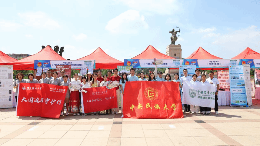 来到乌拉特中旗广场,“‘铸牢’知识应知应会”“概论‘金教材’微宣讲”“推普助力乡村振兴”“美育成果展示互动”“非遗民乐现场展演”等实践活动映入眼帘,这是我校实践团队以“人人知‘铸牢’、人人懂‘铸牢’、人人讲‘铸牢’、人人能‘铸牢’”为主线精心搭建的“铸牢”教育实践交流体验展台。