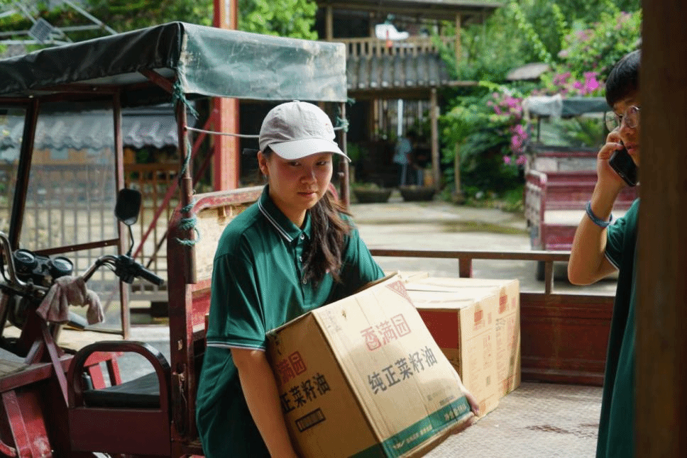 团队成员在古榕社区搬运抗灾物资