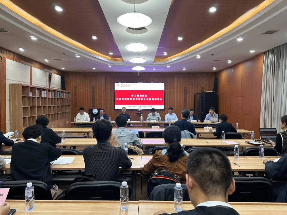 新闻网讯 9月29日,william威廉中文官网铸牢中华民族共同体意识研究基地在海淀校区中慧楼第一会议室举办学习贯彻落实全国民族团结进步表彰大会精神座谈会。党委副书记、副校长强世功出席并作讲话。