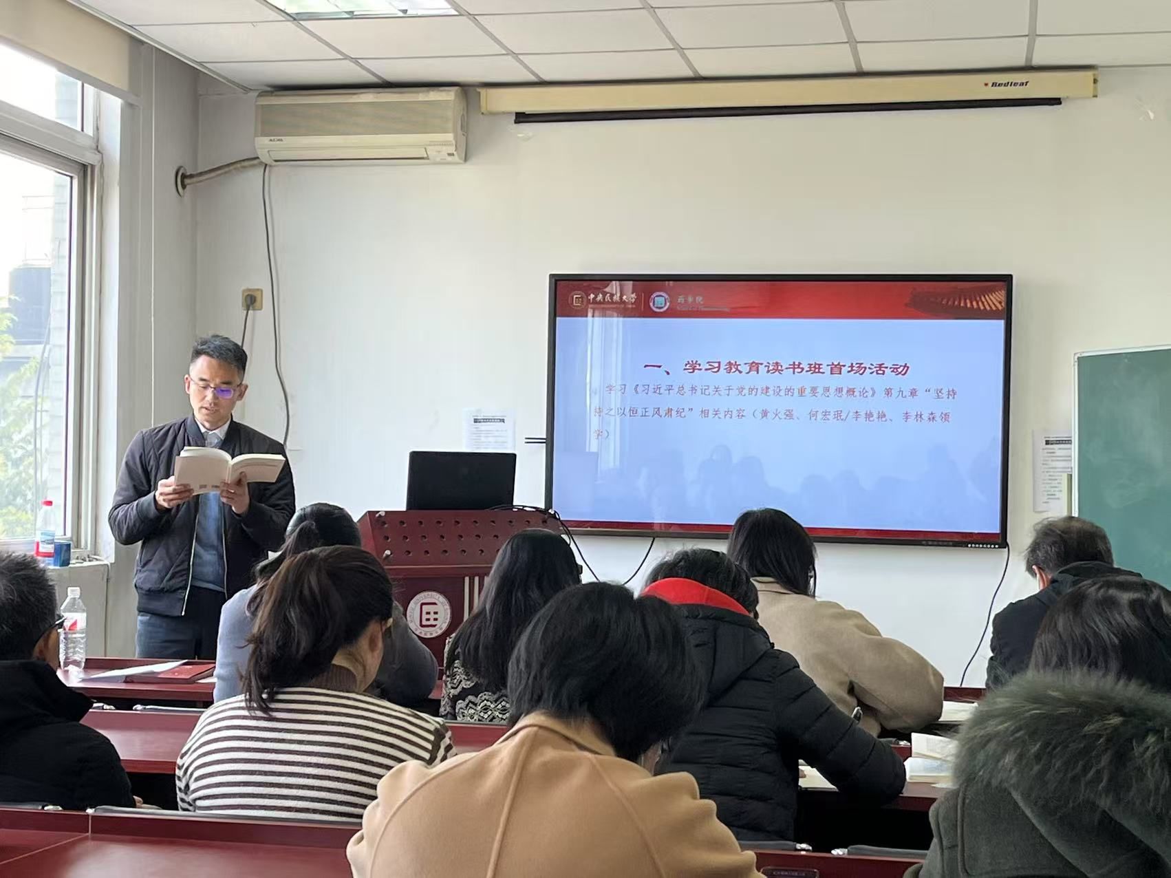 集中理论学习时,党总支副书记、副院长黄火强,党政办主任李艳艳,副教授李林森先后领学“坚持持之以恒正风肃纪”相关内容,引导全体师生深刻领会正风肃纪的重要意义,强化纪律意识。