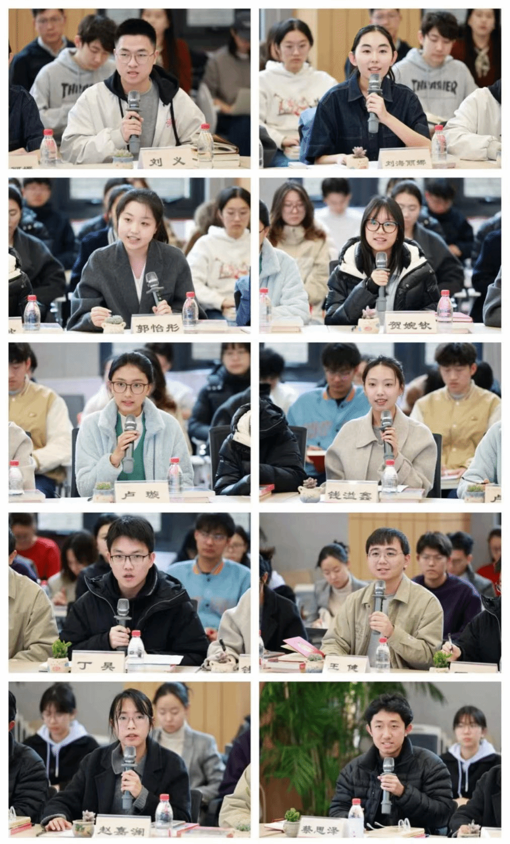 座谈会上,学生代表们踊跃发言,分享了新学期返校感受、专业学习和田野实践情况与成长思考,畅谈收获感悟,并围绕学校建设发展建言献策。中华民族共同体学院刘义同学分享了从书斋到田野的心路历程,诵读“四书”在先贤的智慧中深刻叩问“人应当如何生活”,深入江村开展田野调查在乡土中国的烟火气里真切理解“人究竟如何生活”,表示要立志像费孝通先生那样在知行合一中把论文写在祖国大地上。新闻与传播学院贺婉钦同学分享了参与校园建设调研的经历,呼吁同学们将更多鲜活的“青年声音”转化为可行的“青年方案”,以主人翁的姿态共同绘就美好校园的新图景。