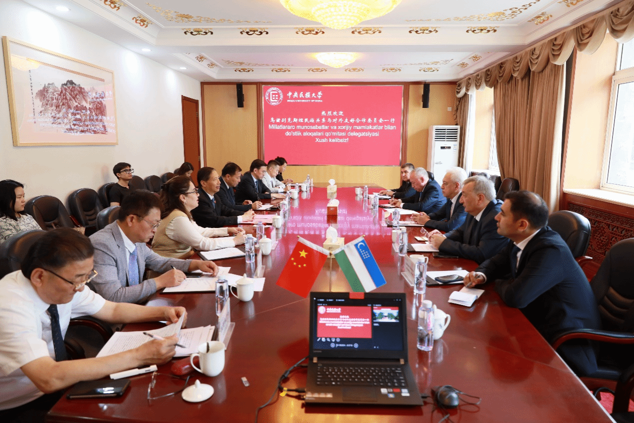 2024年07月06日6月19日下午,乌兹别克斯坦民族关系与对外友好合作委员会主席库尔班诺夫·鲁斯塔姆贝克一行应邀来校访问,国家民委国际交流司副司长杨玉成、乌兹别克斯坦驻华大使馆文化和旅游参赞库尔班诺夫·帝沙德陪同来访。校党委副书记、校长郭广生在海淀校区三号楼一层...