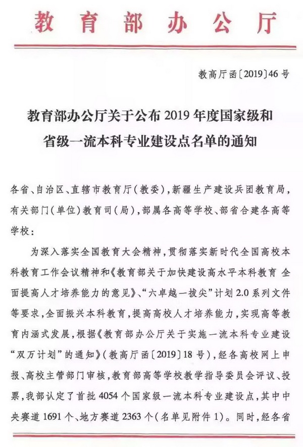 2020年01月06日新闻网讯 近日,根据《教育部办公厅关于公布2019年度国家级和省一级一流本科专业建设点名单的通知》(教高厅函〔2019〕46号),我校民族学、社会学、中国少数民族语言文学、历史学、经济学、法学、教育学、新闻学、计算机科学与技术、公共事业管理、舞...