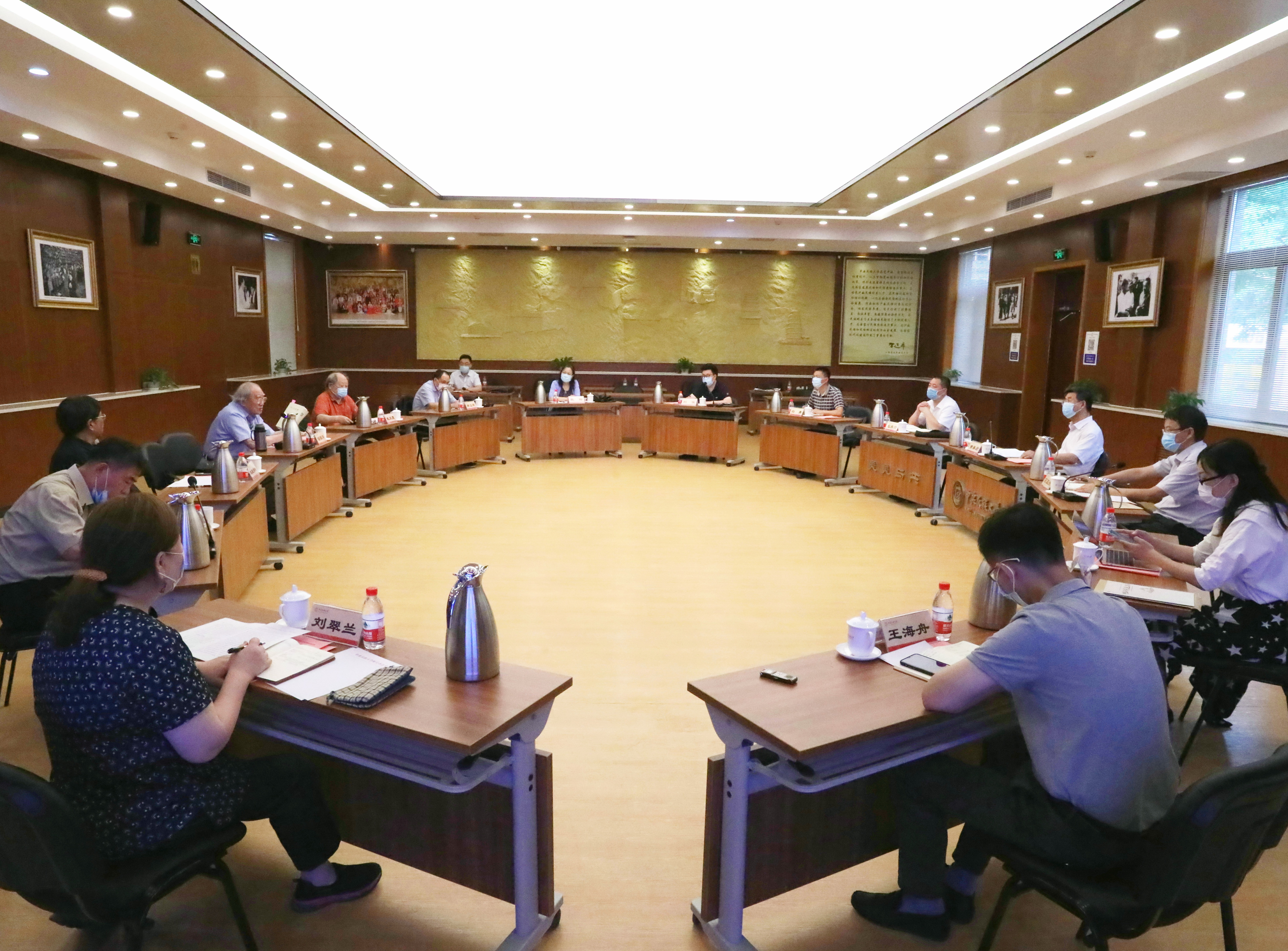2020年06月17日6月17日上午,校党委副书记、校长黄泰岩在知行堂主持召开学校疫情防控工作会议。校领导马文喜、宋敏、石亚洲、再帕尔•阿不力孜、王丽萍、李计勇、麻国庆、张艳丽出席会议。各相关部门负责同志参加会议。
