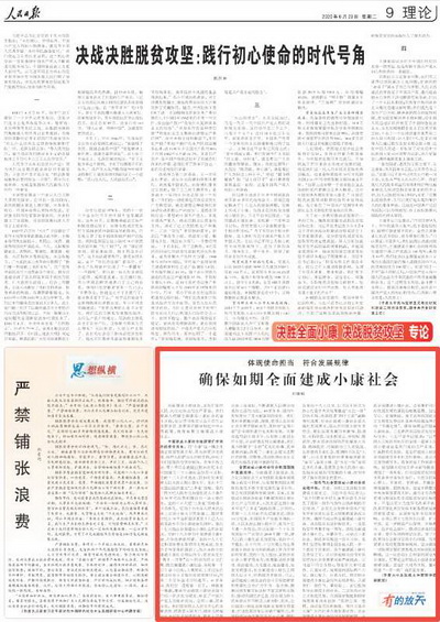 2020年06月24日2020年6月23日,《人民日报》刊登我校管理学院刘璐琳副教授《体现使命担当 符合发展规律 确保如期全面建成小康社会》一文。
