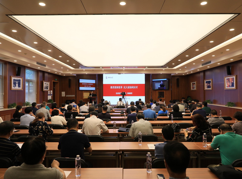 9月5日上午,校党委常委、副校长宋敏以“教育深刻变革 民大该如何应对”为题在知行堂主会场为第五期干部培训班学员作专题辅导报告。