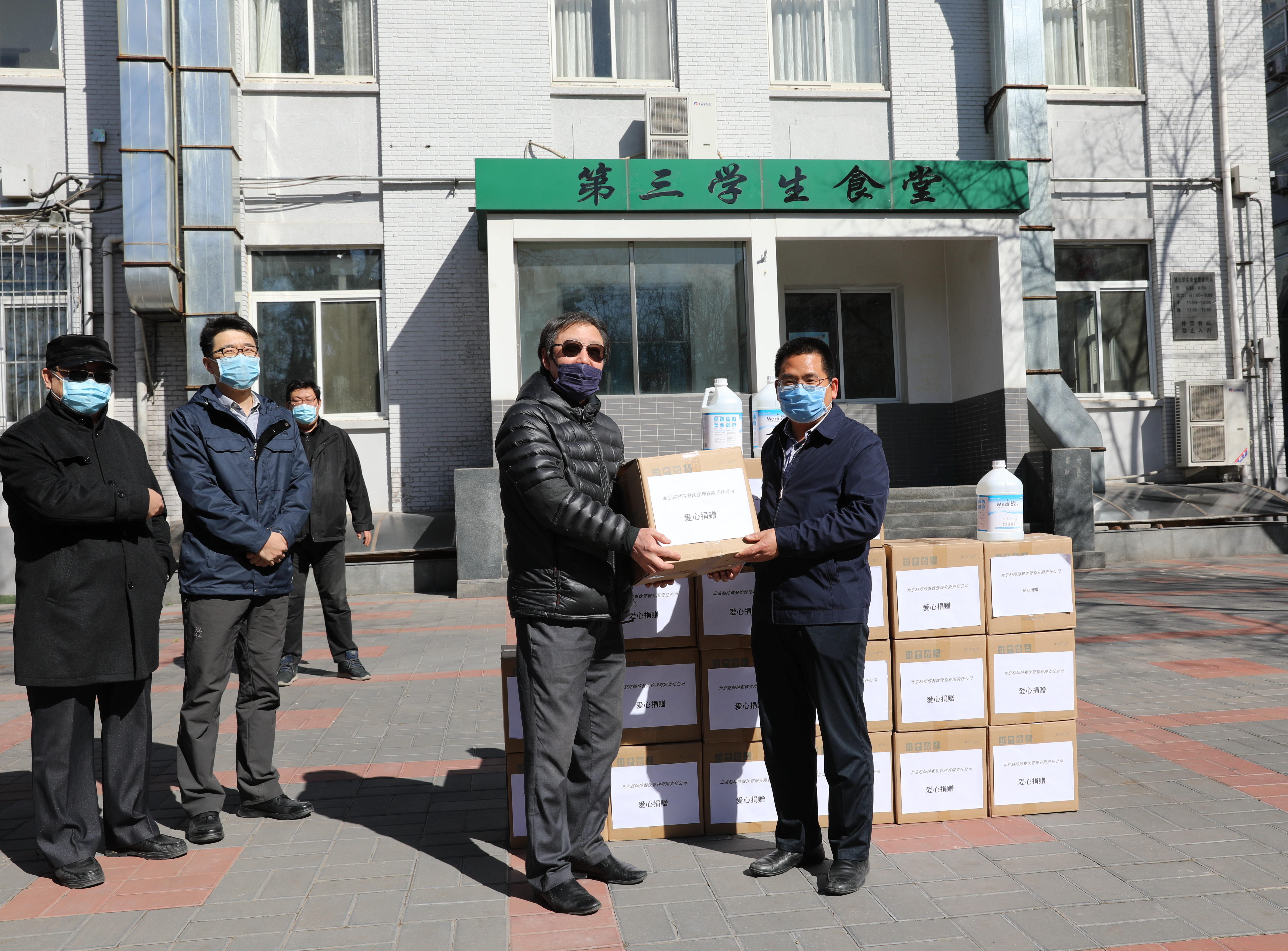 2020年03月30日3月27日下午,北京赵师傅餐饮管理有限责任公司向学校捐赠25箱,价值5万余元消毒洗手液。校党委副书记、副校长李计勇代表学校接受捐赠,对公司给予学校防疫工作的支持表示感谢。李计勇同时也肯定了学校后勤保障处工作人员的辛勤付出和突出表现,希望大家继...